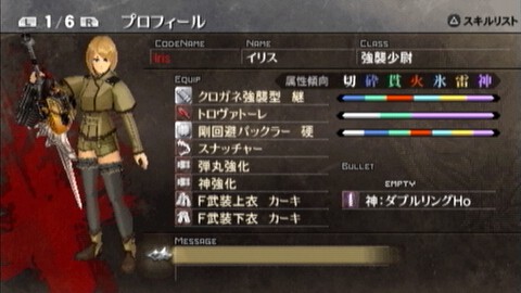 「GEB:たった一人の第一部隊」での装備とスキルのスクリーンショットです。